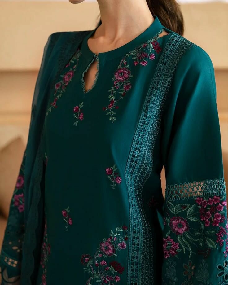 2 Pcs women's Stitched linen embroidery shirt Trouser