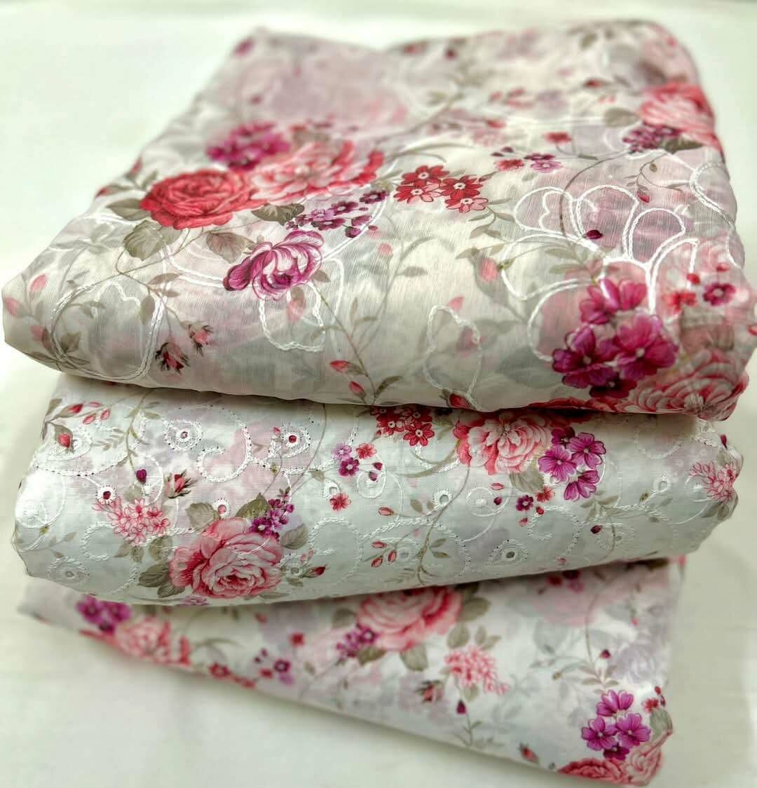 New Digital Printed Lawn Suit With Chikencari Embroidery 3,pc