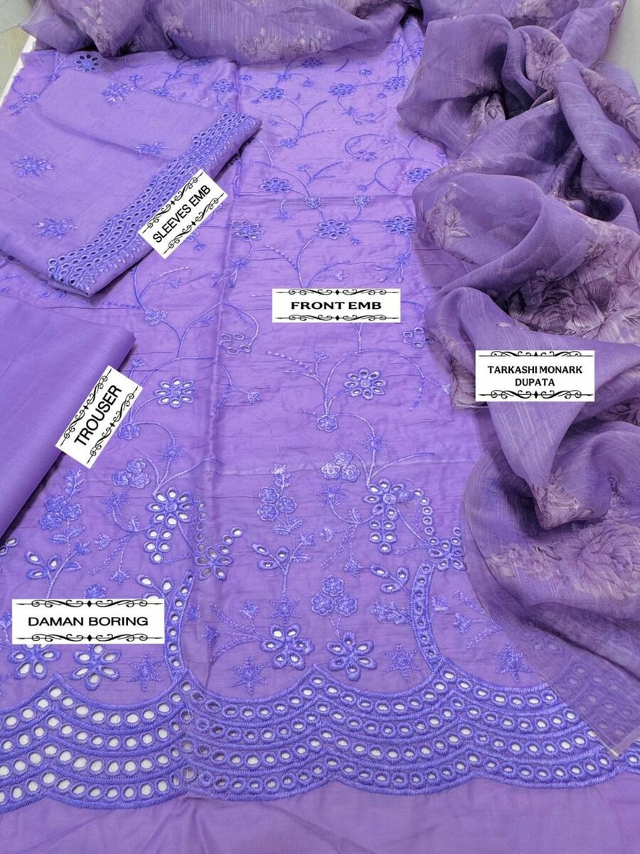 *_SUMMER COLLECTION _* *ALHAMDULILAH* */CROSS STITCH* 3pc Summer Casual Collection Code:FF *LAWN AIR JET BEST WORLD CLASS QUALITY STUFF* front Full Emb Tarkashi Monark dupata Seleeves Emb Dyed/print trouser
