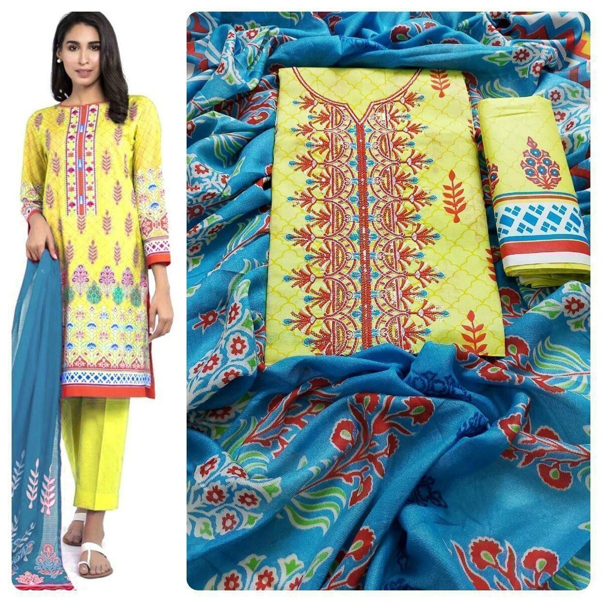 Lawn 3 Piece Embroidered Suit With Shafoon Dupatta Latest Design Most Demanding Summer Ladies Suit Unstitched