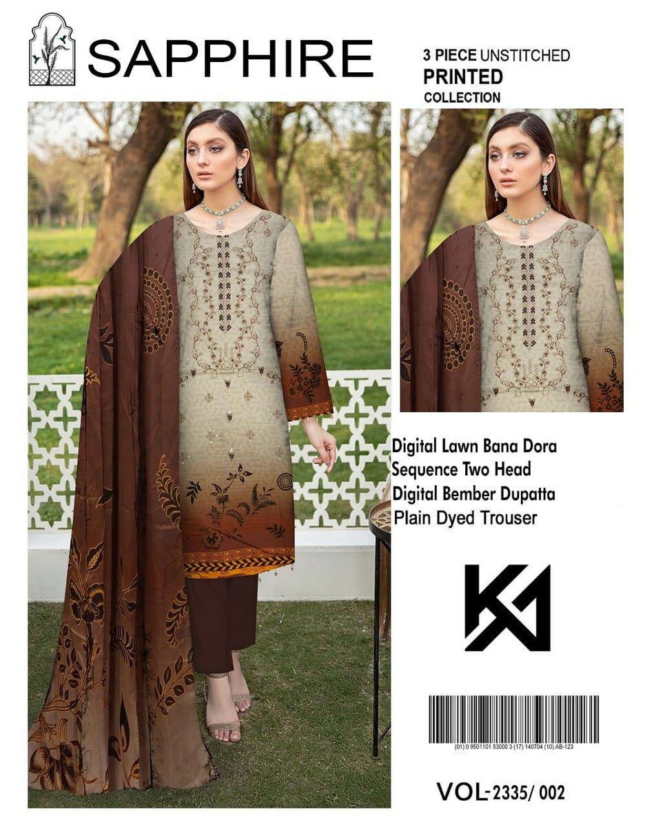 Digital Lawn Two Head Embroidery With Pire Bamber Duppata