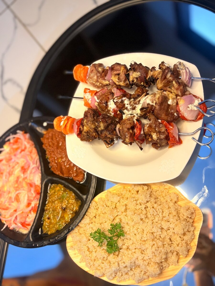 Nous avons la soupe de porc ; brochettes de porc ; porc grillé ; ragoût de porc .