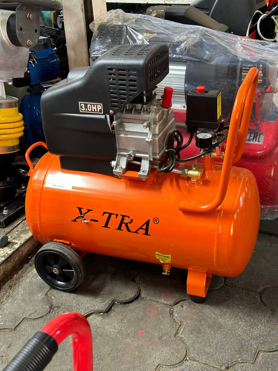 Компрессор50л Фирма-x-tra Медная обмотка Год гарантия 8-атмосфера 238л/мин качает Емкость бочка 50л Работает от 220v Мощность двигателя 1.5квТ Доставка есть по Кыргызстану Наш Адрес Жибек-жолу 122 Аламединский рынок