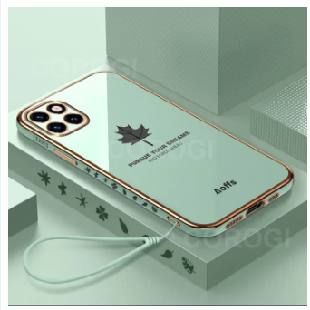 Product details of LECOMES for Infinix Smart 6 HD Back Cover Luxury 6D Plating Maple Leaf Side Pattern Case with Lanyard Square Bumper Soft Silicone Phone Cases Covers Pouch