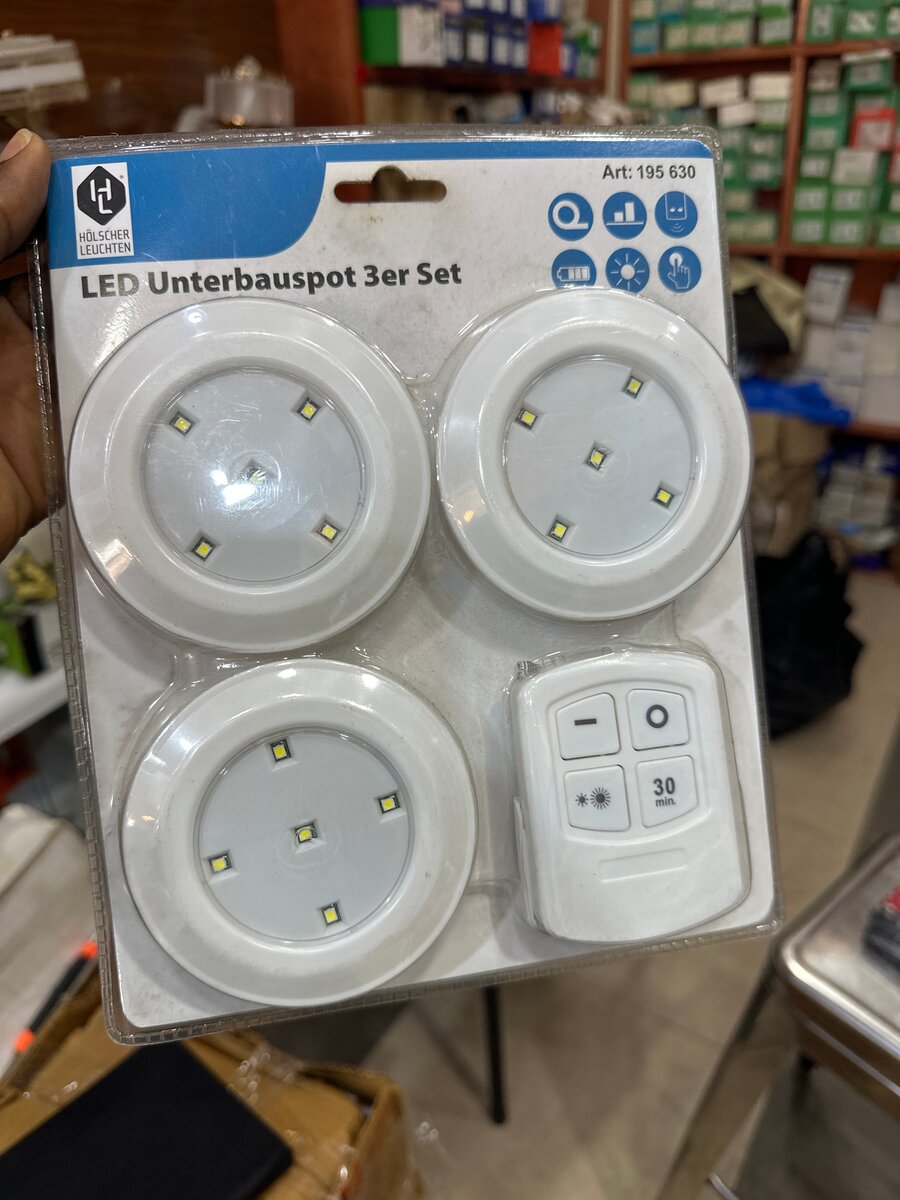 Illuminate your space with this LED Under Cabinet Light Set, featuring three powerful spotlights and a convenient remote control. Perfect for kitchens or closets.