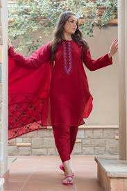 2 piece V Neck Mehroon Embroidered