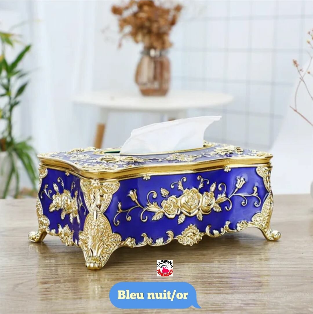 Ajoutez une touche royale à votre intérieur avec cette luxueuse boîte à mouchoirs en bleu et or. Un incontournable pour une décoration sophistiquée.