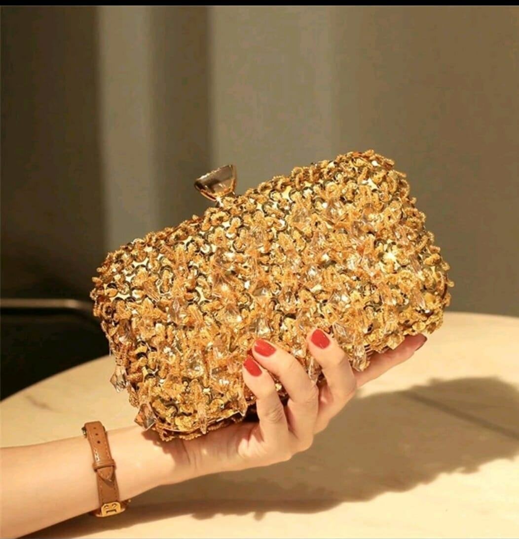 Ajoutez une touche de glamour à vos tenues avec cette pochette dorée étincelante. Parfait pour les soirées et événements spéciaux, ce sac à la fois chic et pratique est un choix idéal pour compléter votre look élégant.