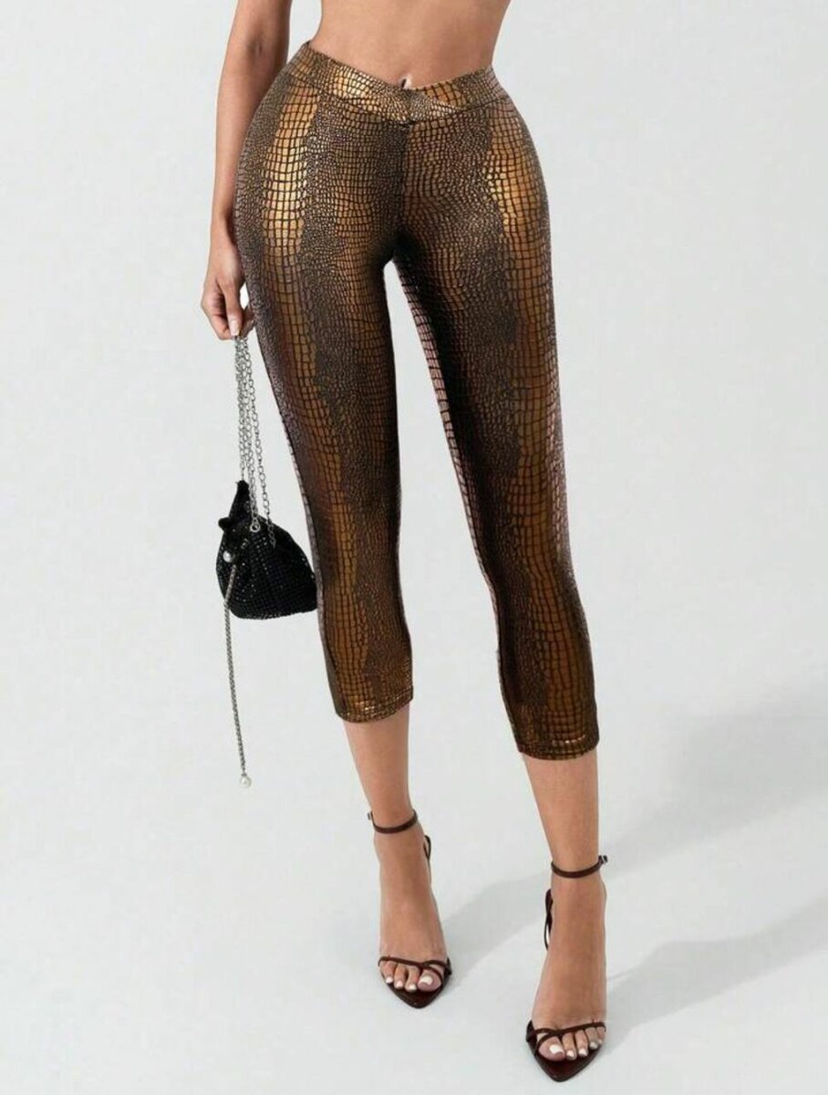 Mettez en valeur votre style avec ce legging effet serpent doré. Parfait pour les soirées ou occasions spéciales, ce pantalon apporte une touche glamour et audacieuse à votre tenue. Conçu pour épouser vos formes, il est à la fois confortable et tendance. Idéal pour les femmes modernes qui souhaitent se démarquer.