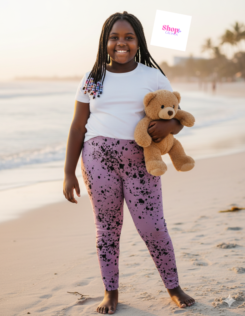 Ces leggings violets avec motif éclaboussé sont parfaits pour les enfants de 9 mois à 8 ans. Confortables et stylés, ils sont idéaux pour les aventures quotidiennes et les jeux. Offrez à votre enfant une allure tendance et décontractée.