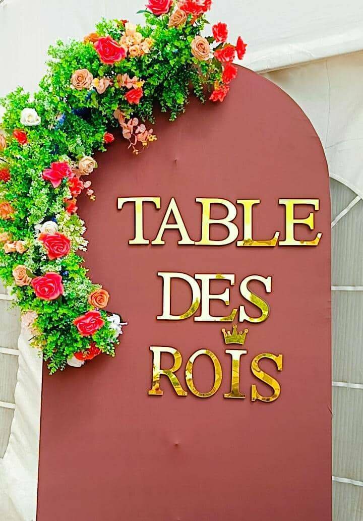 Ajoutez une touche royale à votre événement avec ce superbe panneau décoratif 'Table des Rois'. Parfait pour les mariages, anniversaires et célébrations spéciales, ce panneau orné de fleurs vibrantes attire tous les regards. Idéal pour créer une ambiance élégante et inoubliable.