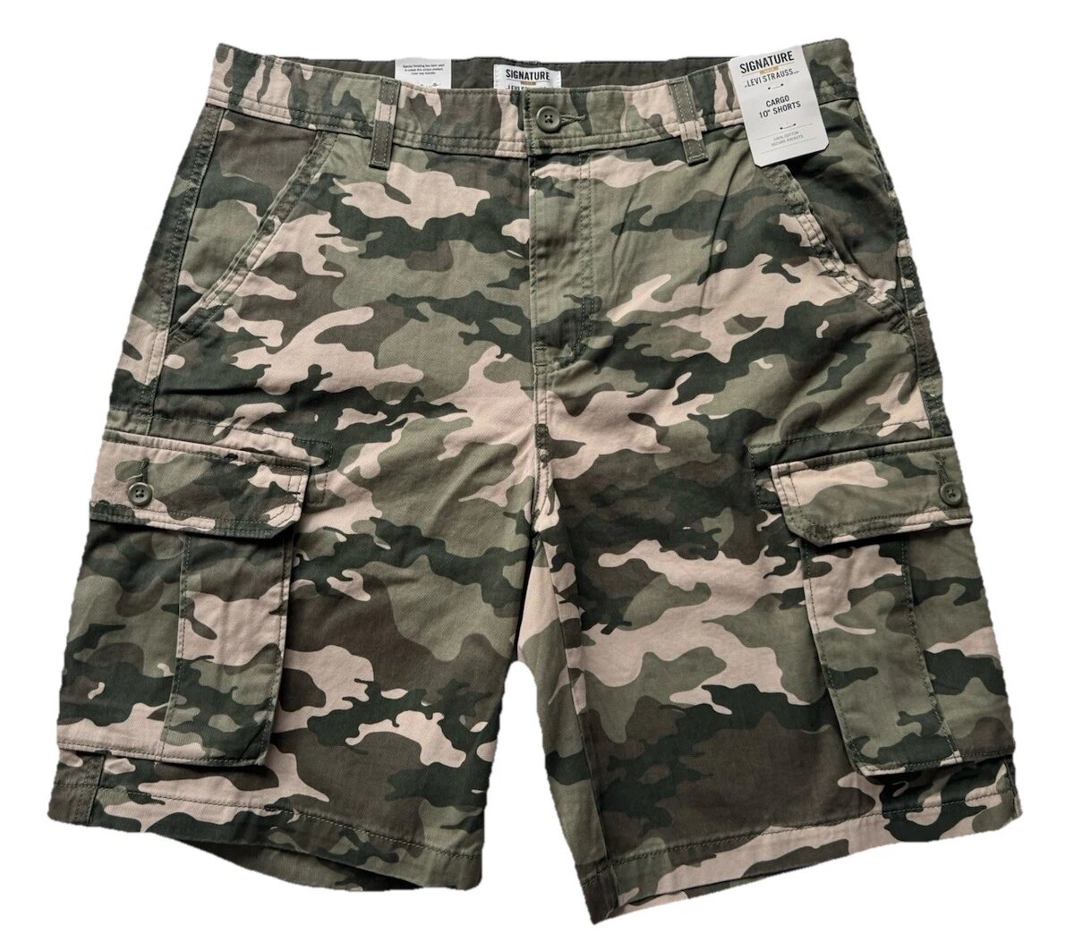 Levi's Strauss Classic Men's Cargo Shorts. Emblazoned with a distinctive camo pattern, these shorts are a versatile addition to any wardrobe, blending functionality with fashion. The durable cotton fabric ensures comfort and longevity, while the mid-rise and classic fit offer a flattering silhouette for a variety of body types.