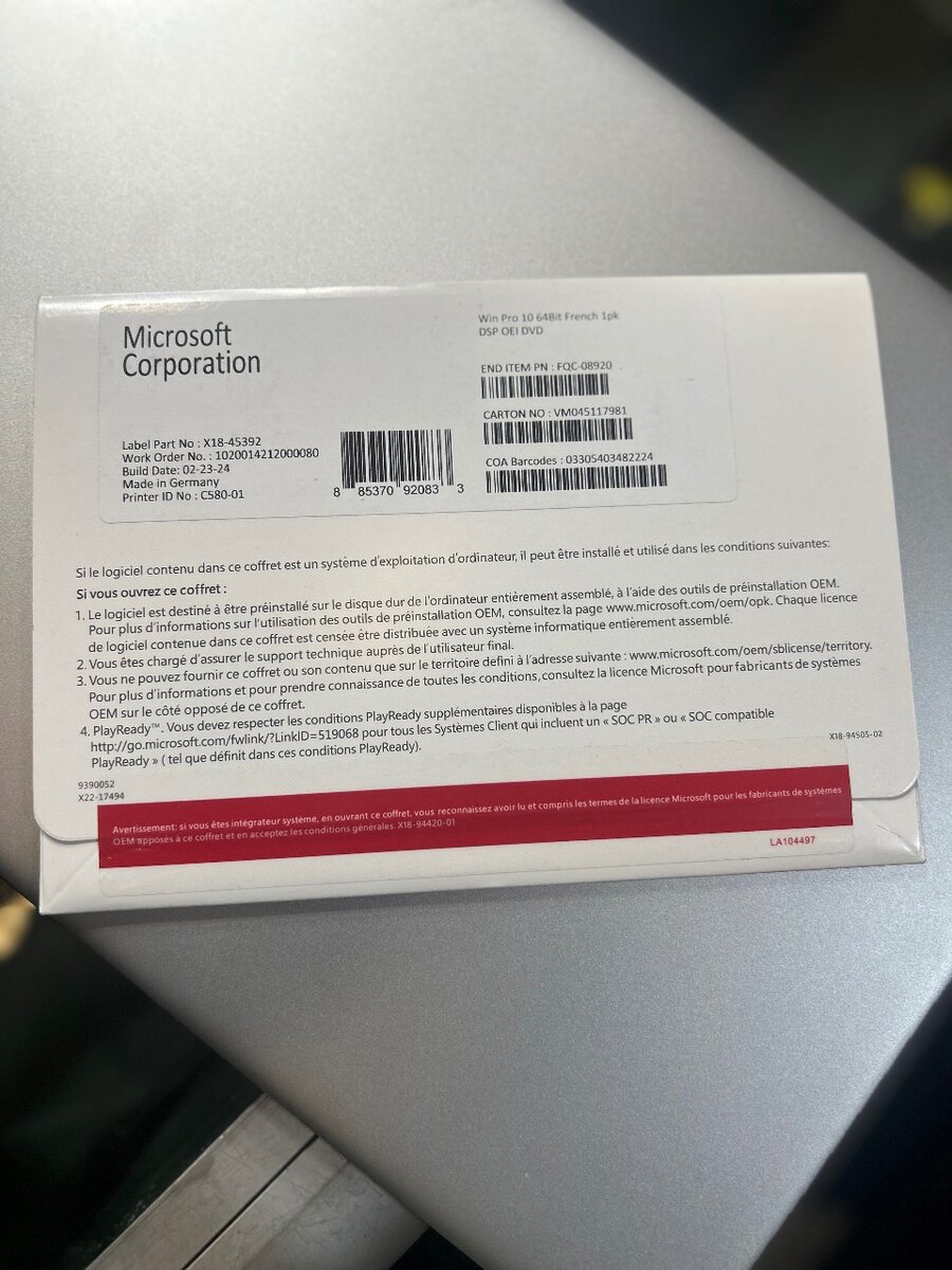 Licences Microsoft Windows Pro 10//11 64 bit Coffrets