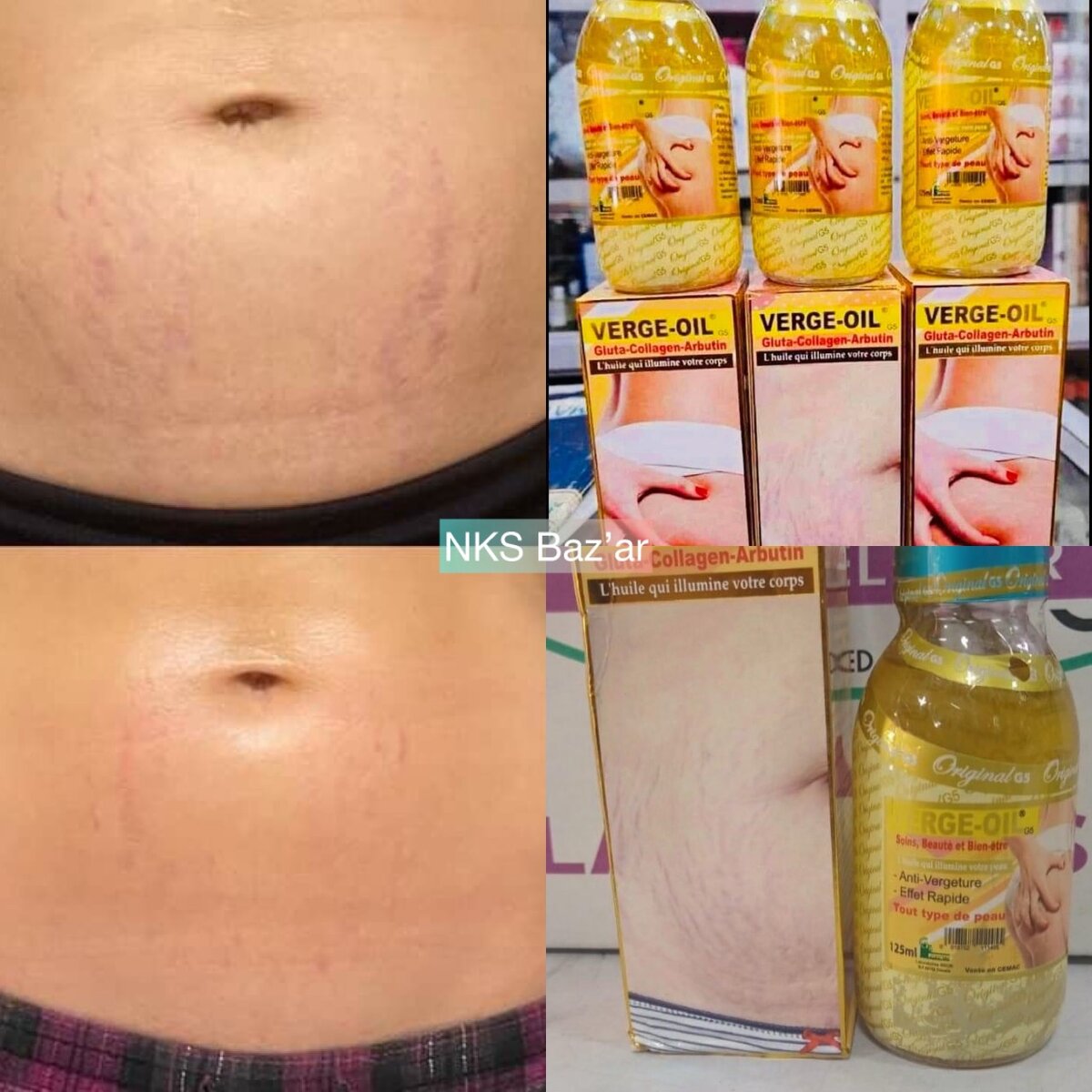 Verge _oil tire ses propriétés d un mélange de produits naturels aux vertus extra -ordinaire.mélange des plusieurs huiles essentielles tél que l huile d argan , collagène, vitamin E , alpha arbutin