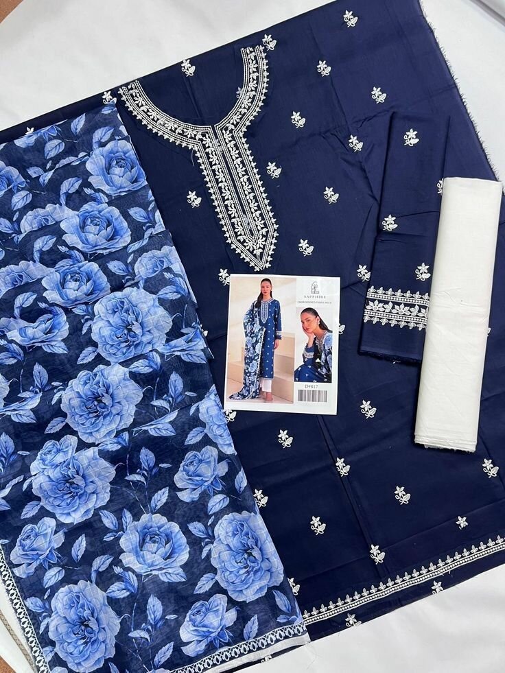 Women unstitched embroidered suit