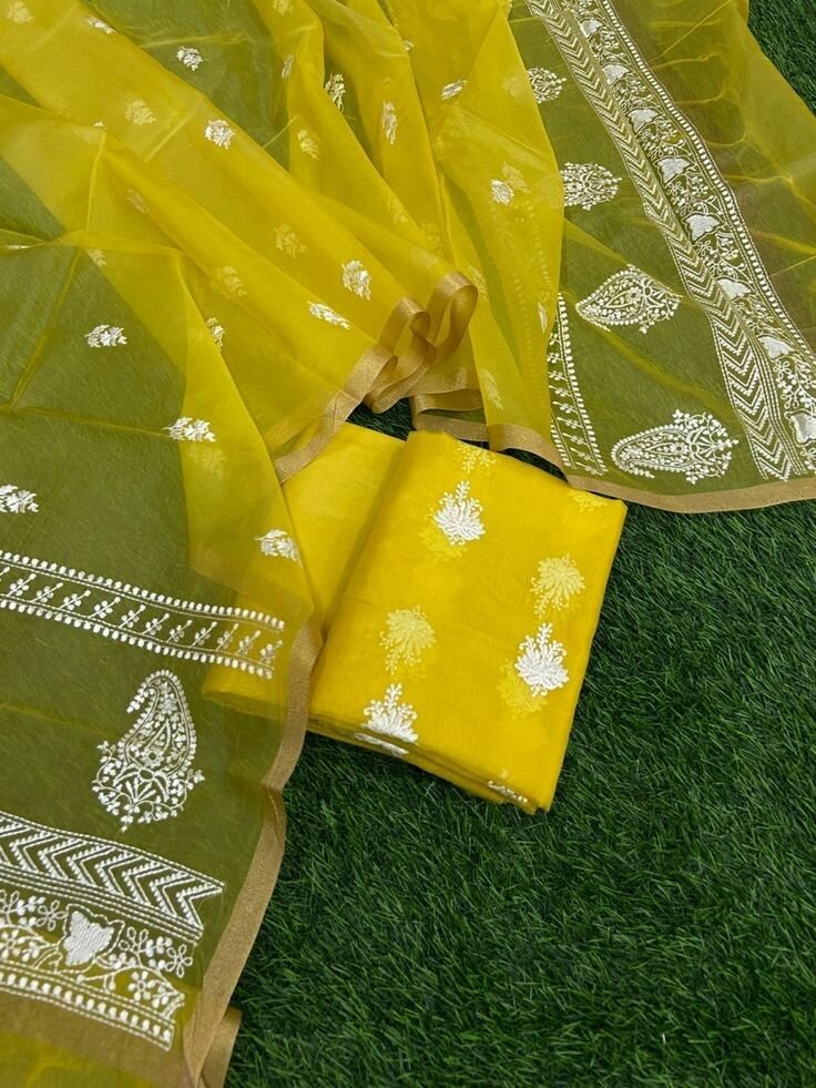New Eid collection 3 pc .organza,silk, chiffon dc free