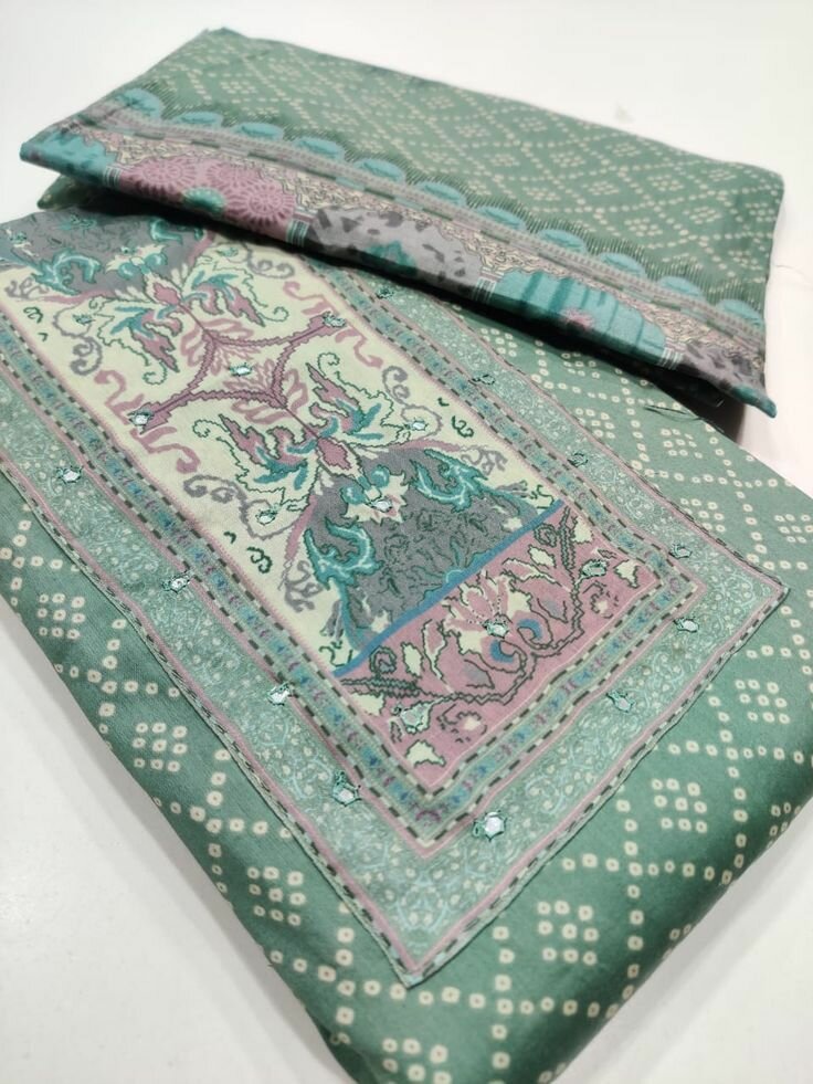 Beautiful 3pc unstitched embroidery dress+ patches