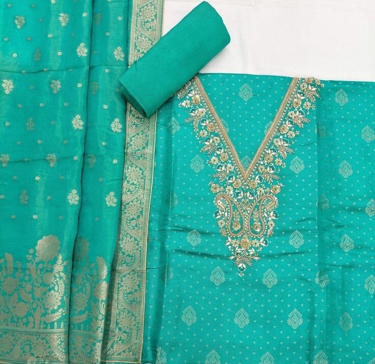 Linen Embroidered Shirt, Linen Plain Dyed Trouser, Linen Border Embroidery Duppata...