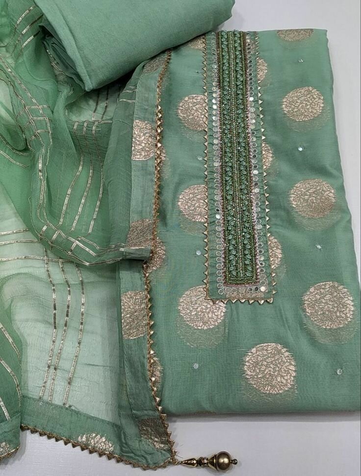 Linen Embroidered Shirt Linen Embroidery Duppata, Linen Plain Trouser..
