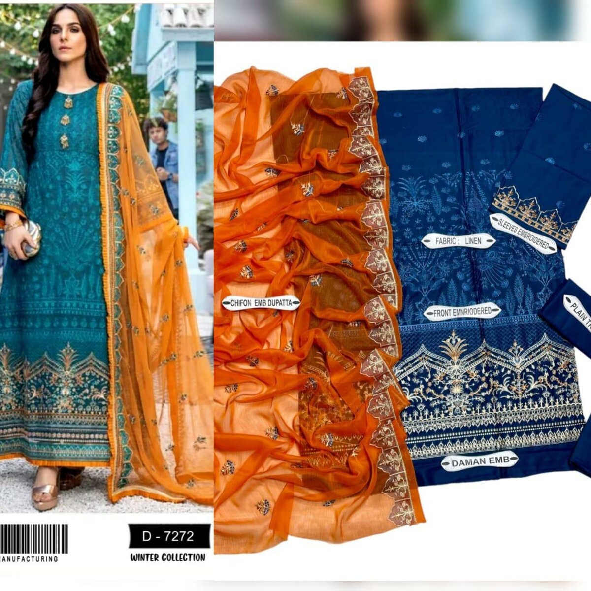 Linen Emboidered Shirt Linen Emboidered Trouser Linen Emboidered Dupata