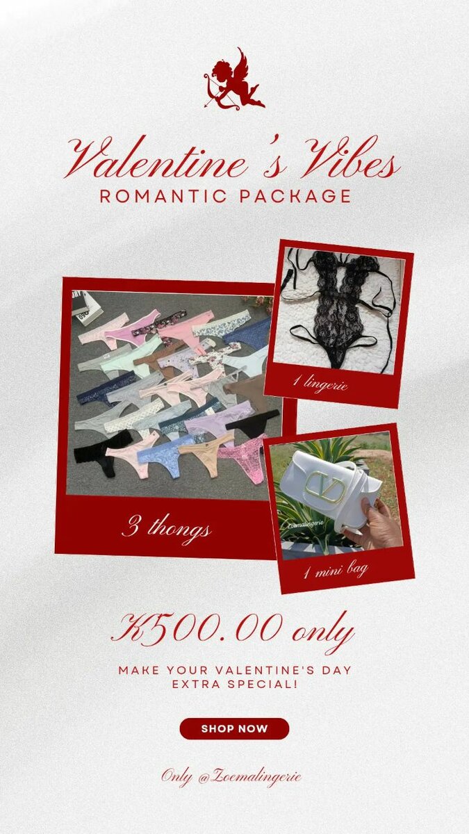 Get 3 thongs 1 lingerie 1 mini bag at K500 inbox me for more info