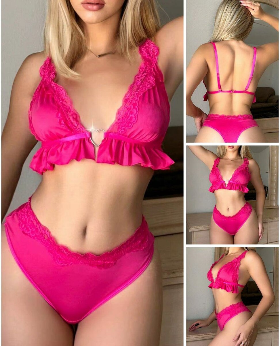 Sublime ensemble de lingerie rose vif avec détails en dentelle. Confortable et élégant, parfait pour se sentir confiante au quotidien. Design séduisant avec un soutien-gorge festonné et une culotte taille haute flatteuse. Idéal pour des occasions spéciales ou pour se faire plaisir. Matière douce pour un confort optimal.