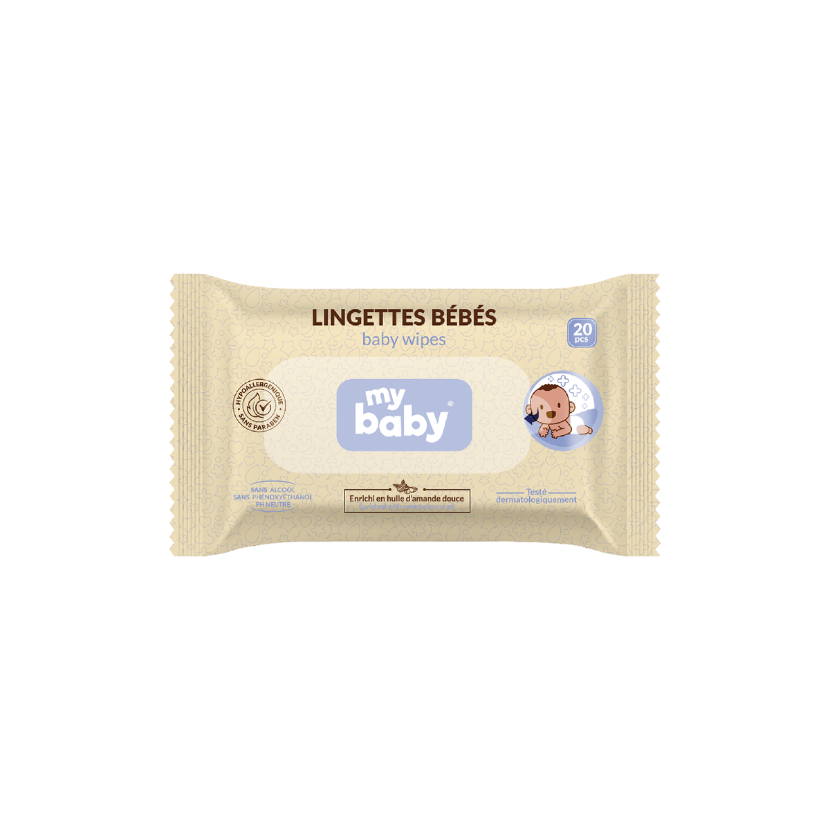 "Les lingettes 𝗠𝗬 𝗕𝗔𝗕𝗬 enrichies en huile d’amande douce sont idéales pour le nettoyage de bébé tout en douceur. Spécialement conçues pour les peaux sensibles, elles respectent la peau fragile de bébé et sont utilisables dès la naissance.