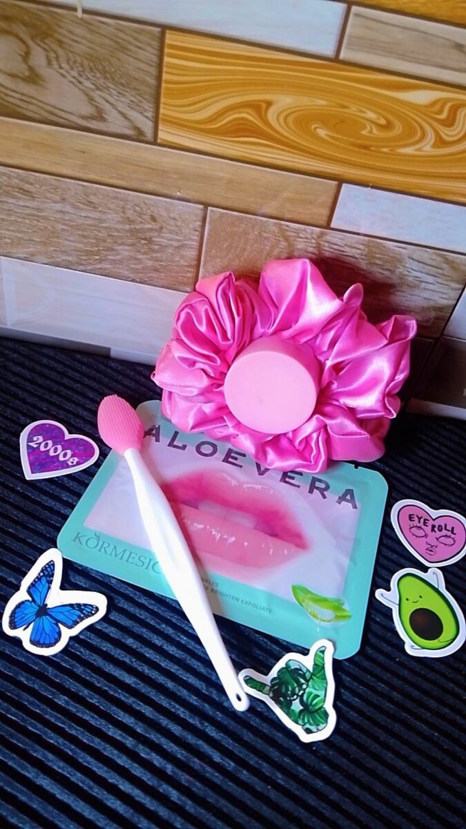 Includes a lip scrub, brush, mask and scrunchie