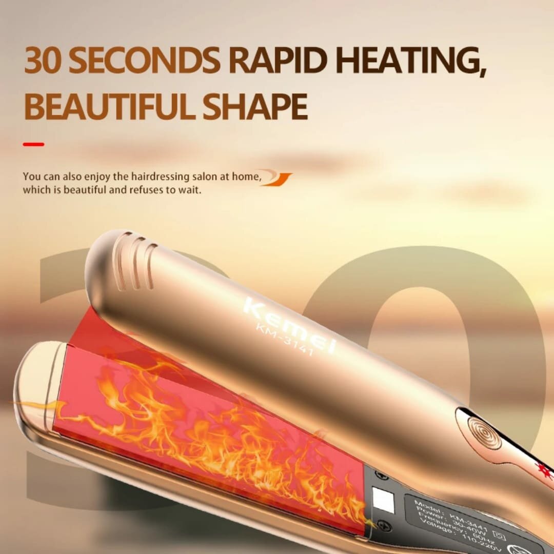 Obtenez des cheveux lisses en 30 secondes avec le lisseur Kemei KM-3141. Profitez d'un coiffage rapide et efficace à la maison, avec un design élégant et moderne. Idéal pour un usage quotidien, ce lisseur est votre allié pour une coiffure parfaite.