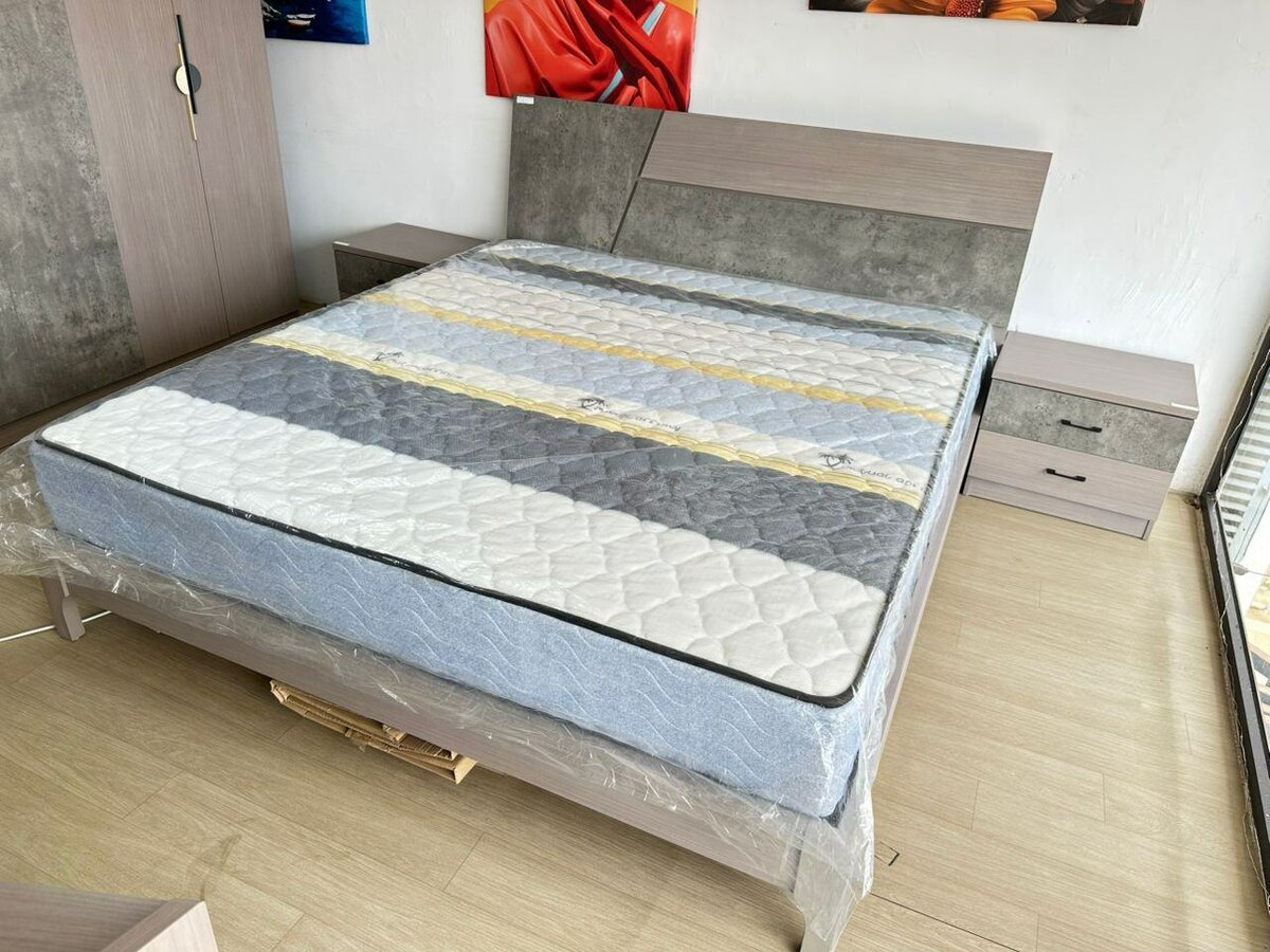 Upgrade your bedroom with this sleek, modern queen bed frame. Crafted with durable materials, it offers a sophisticated design to complement any decor. Perfect for creating a cozy and stylish sleeping space.