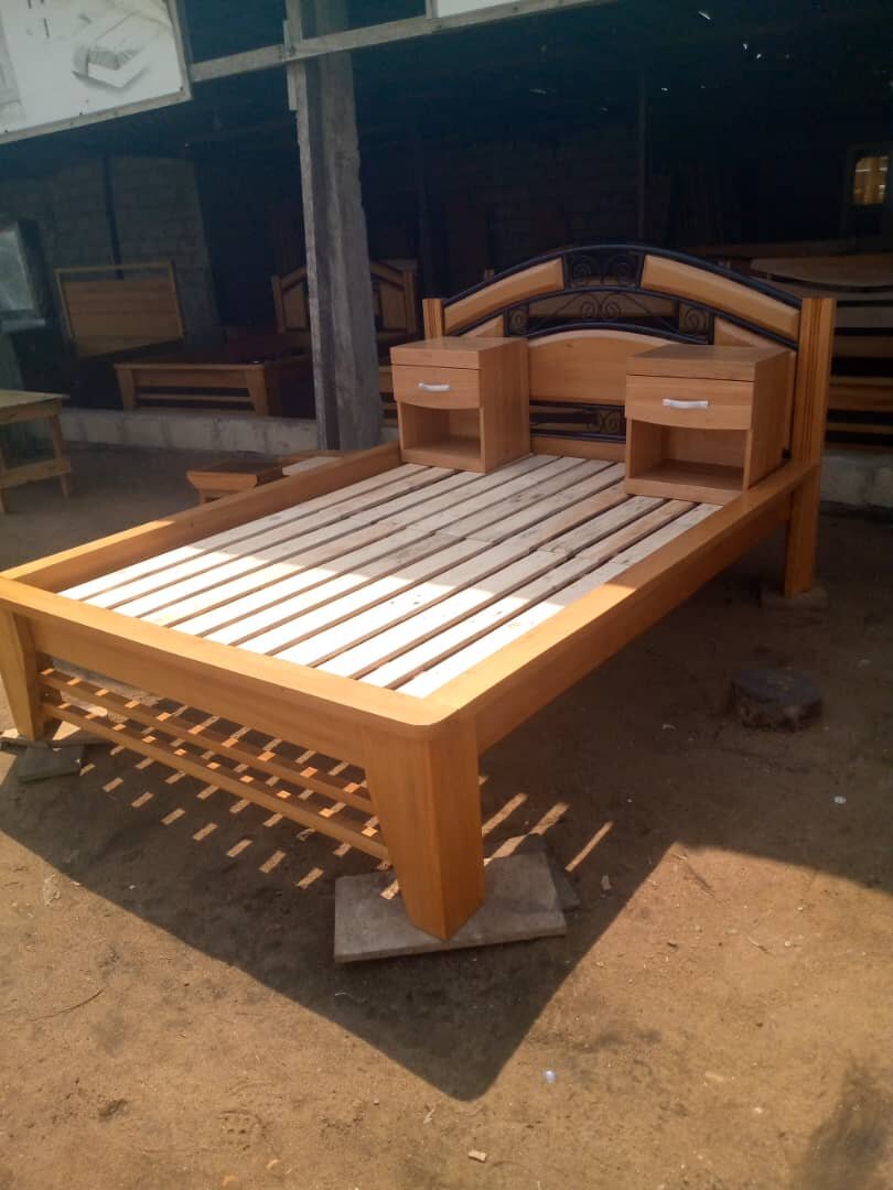 Lit en bois baya 3 place avec fer et deux caisses durables