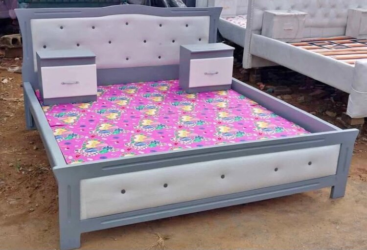 Lit moderne avec tête de lit et rangements intégrés. Conçu pour un confort optimal et un design élégant. Parfait pour une chambre à coucher contemporaine.