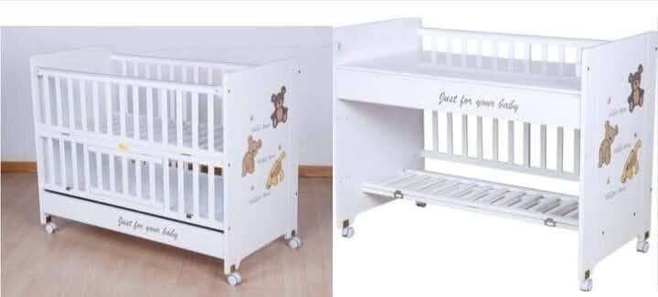 Offrez à votre bébé confort et sécurité avec ce lit bébé évolutif en bois. Doté de roulettes pour un déplacement facile, il est décoré d'adorables motifs d'oursons. Idéal pour accompagner la croissance de votre enfant, ce lit est un choix parfait pour une chambre moderne et chaleureuse.