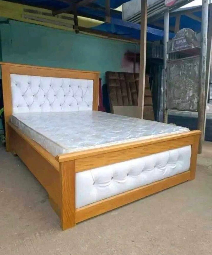Découvrez ce magnifique lit en bois avec une tête capitonnée élégante, parfait pour ajouter une touche de luxe à votre chambre. Confortable et stylé, ce lit est idéal pour une chambre moderne. Profitez d'un sommeil réparateur dans ce lit spacieux et raffiné.