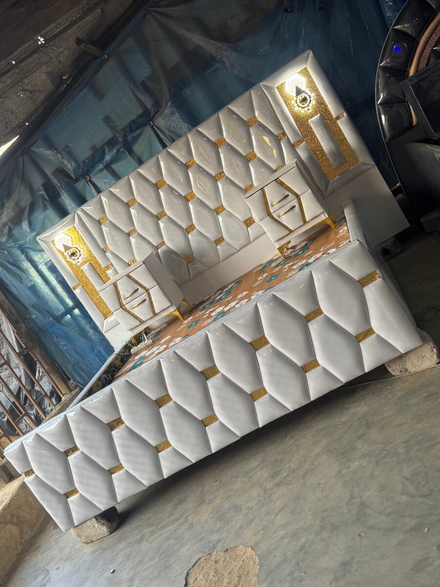 Découvrez ce lit capitonné en cuir, une pièce élégante pour votre chambre. Avec son design moderne et ses lumières intégrées, il offre style et fonctionnalité. Idéal pour ajouter une touche de luxe à votre intérieur.