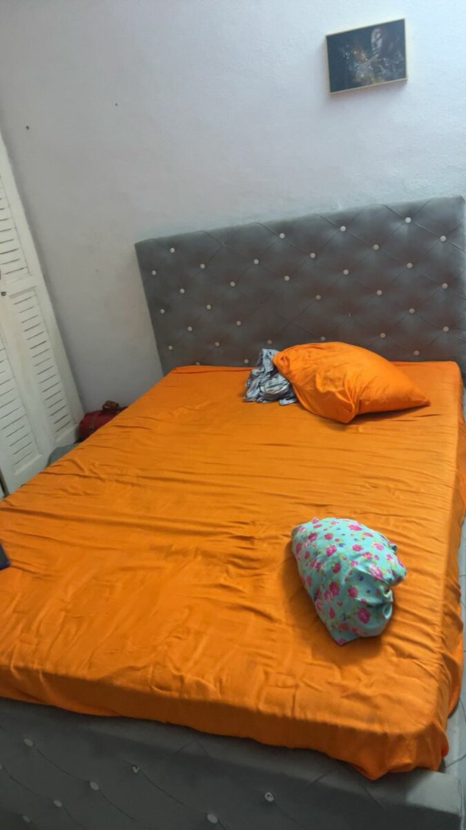 Découvrez ce lit matelassé élégant avec une tête de lit capitonnée pour un confort optimal. Vendu avec une parure de lit en orange vif, il apportera une touche chaleureuse à votre chambre. Idéal pour un sommeil réparateur dans un cadre stylé.