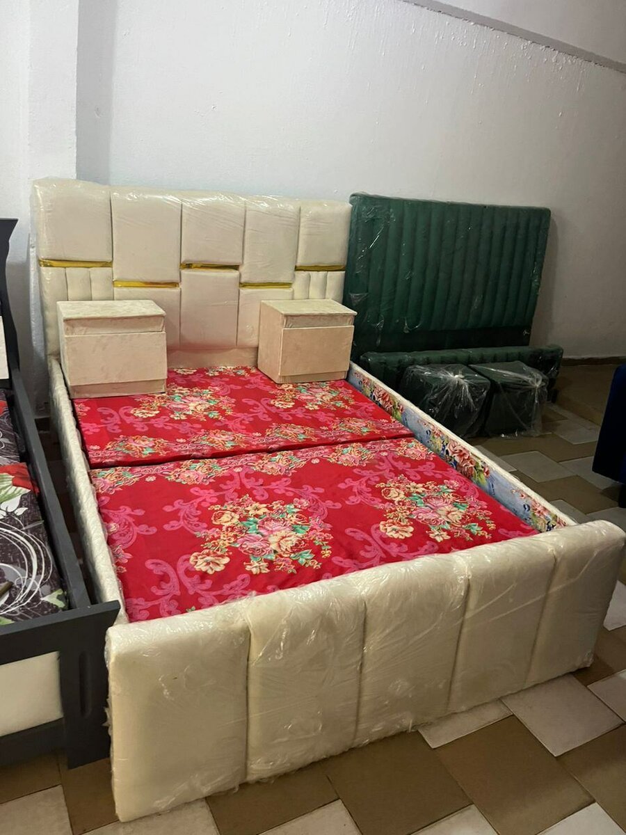 Lit capitonnée en très bon état matériaux de bonnes qualités (le bon bois teck)