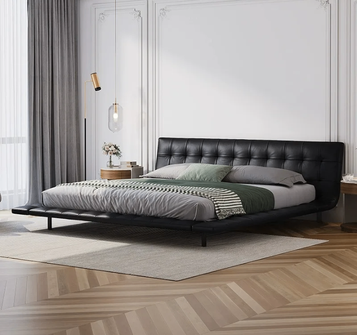 Lit design capitonné en cuir noir