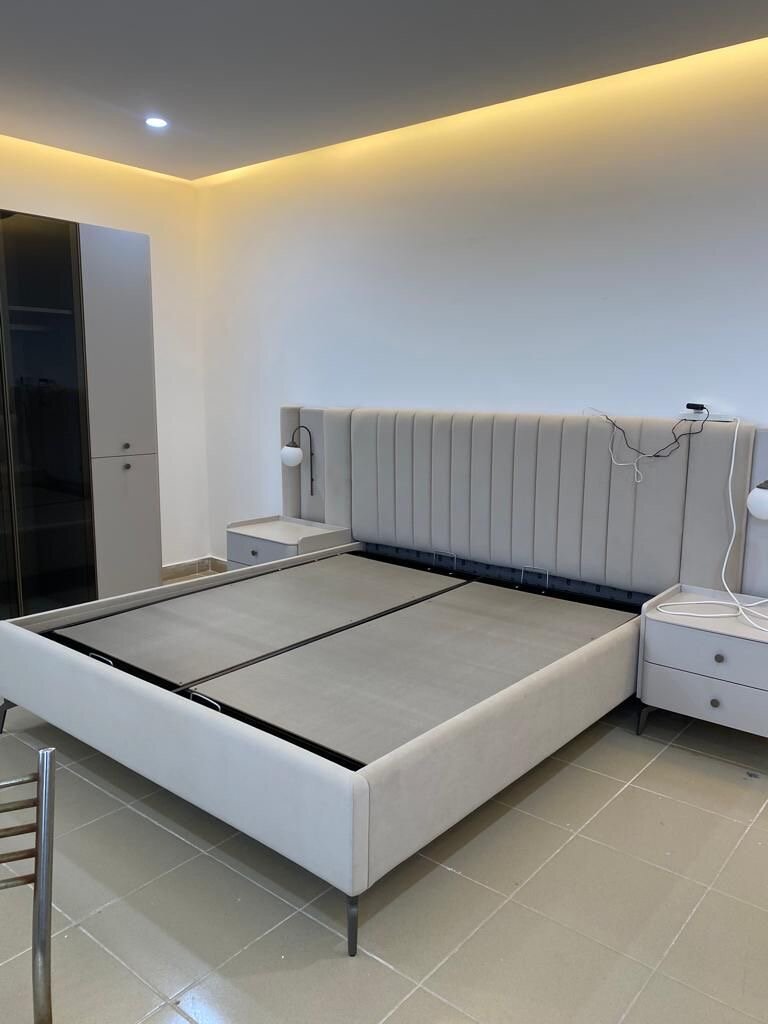 Découvrez ce lit contemporain au design épuré et élégant, équipé d'un éclairage intégré dans la tête de lit. Il est accompagné de deux tables de chevet fonctionnelles avec tiroirs et éclairage individuel. Fabriqué avec des matériaux de haute qualité, il offre un confort optimal et une intégration parfaite dans une chambre moderne. Parfait pour ceux qui recherchent un style minimaliste et fonctionnel.