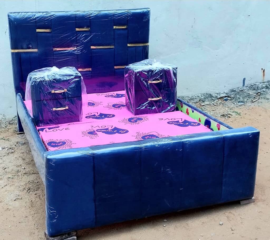 Ce lit double offre un design moderne et élégant, complété par deux tables de chevet assorties. Idéal pour un intérieur contemporain, il est à la fois esthétique et pratique grâce à ses tiroirs intégrés. Créez un espace de sommeil luxueux et fonctionnel.