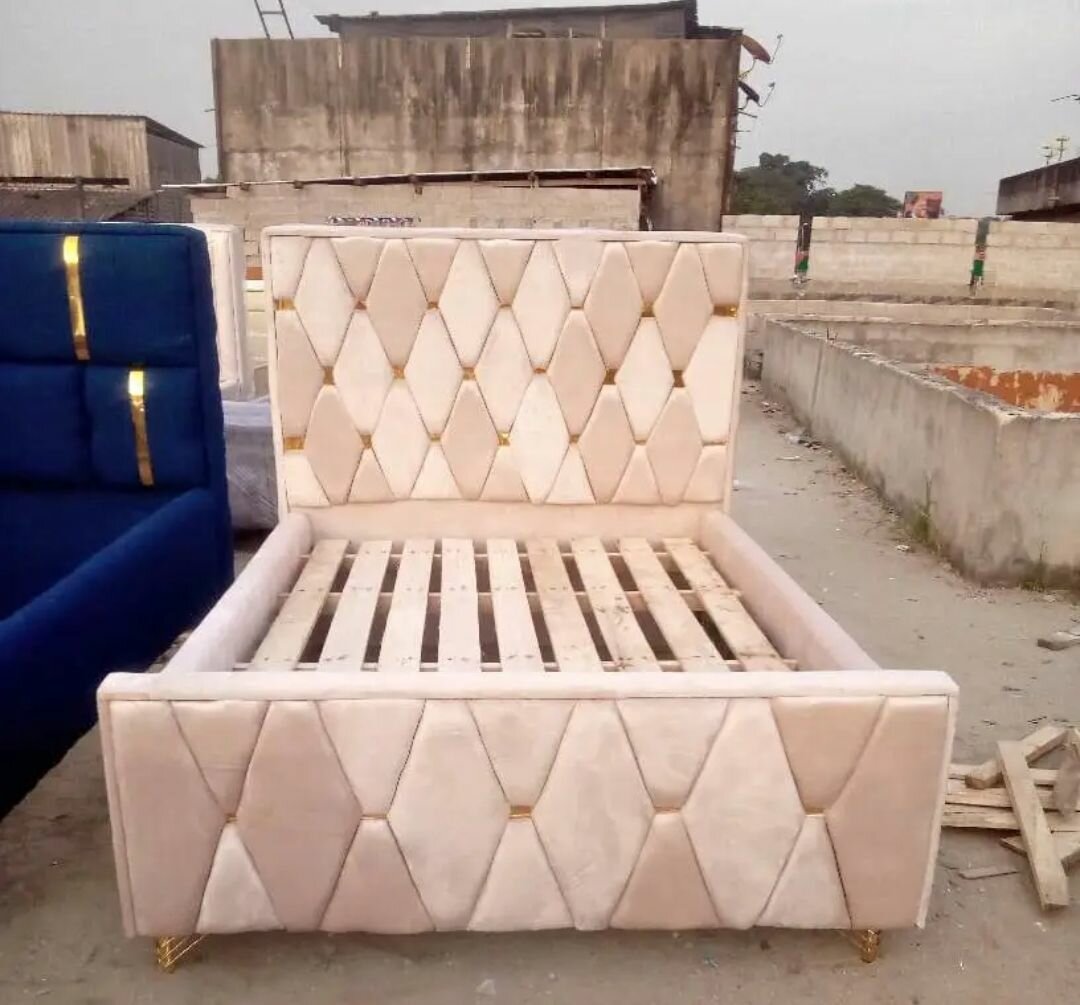 Élégant lit double capitonné en simili cuir beige avec tête de lit relevable. Design luxueux et confortable, idéal pour une chambre moderne. Fabriqué avec des matériaux de haute qualité, ce lit offre un soutien optimal et un style raffiné. Parfait pour créer une ambiance cosy et sophistiquée dans votre espace de nuit.
