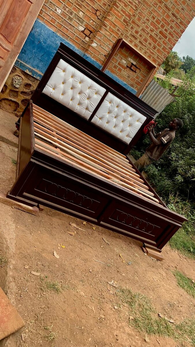 Lit en bois avec tête de lit capitonnée