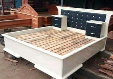 Transformez votre chambre avec ce lit double moderne en bois. Doté de tables de chevet intégrées et d'une tête de lit capitonnée, il combine élégance et praticité. Parfait pour apporter une touche d'élégance à votre intérieur.