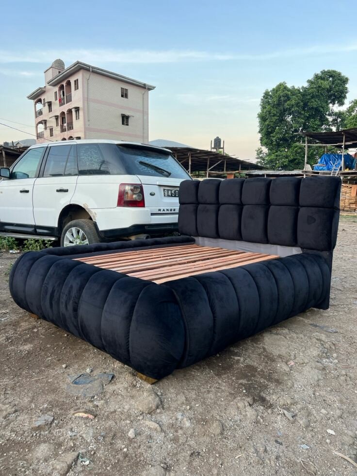 Lit double moderne en velours noir