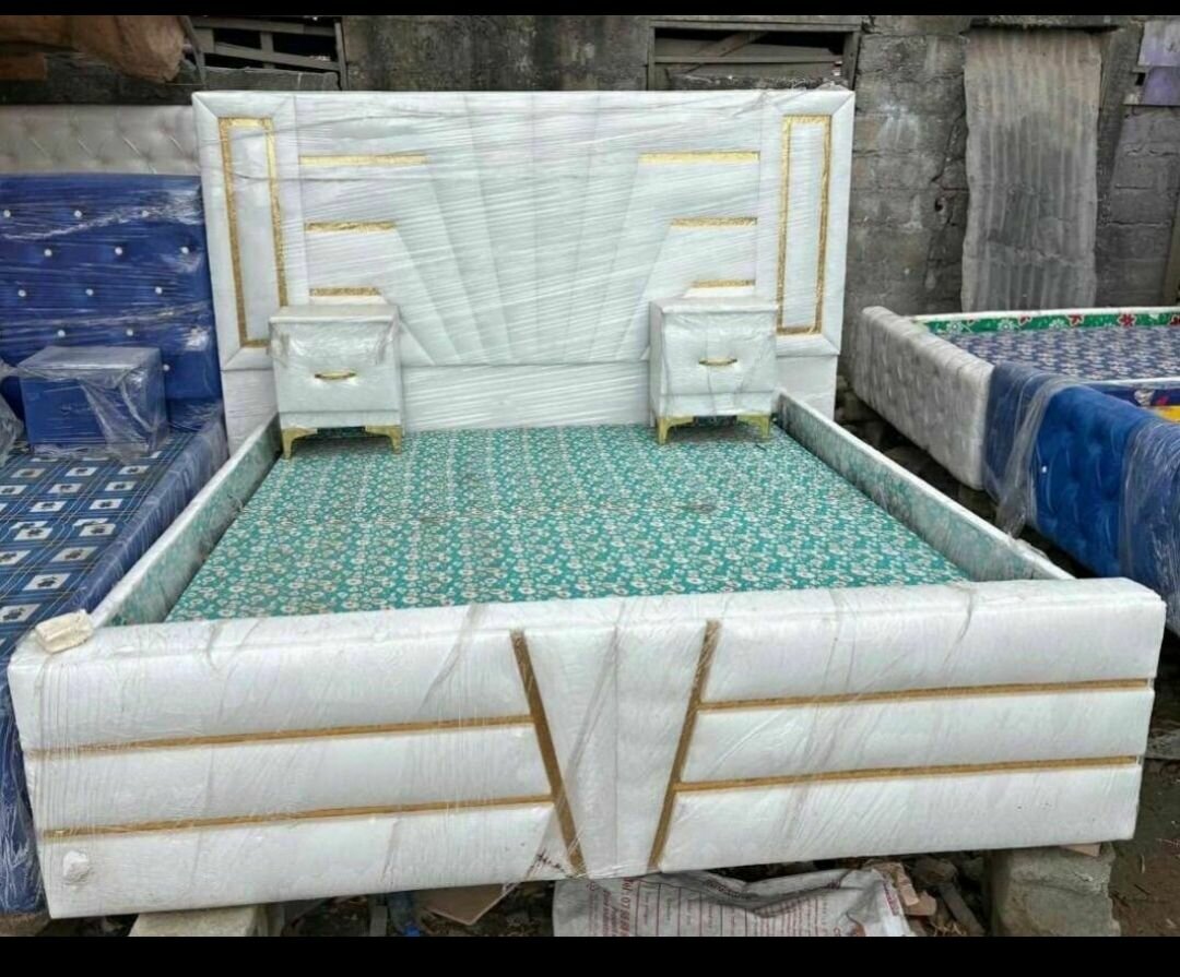 Transformez votre chambre avec ce lit double moderne et élégant. Doté d'une structure rembourrée et d'une tête de lit design, il allie confort et style. Idéal pour une décoration de chambre contemporaine, ce lit offre un soutien optimal et un look sophistiqué. Parfait pour votre refuge nocturne, il devient le centre d'attention grâce à sa finition soignée et ses détails dorés.