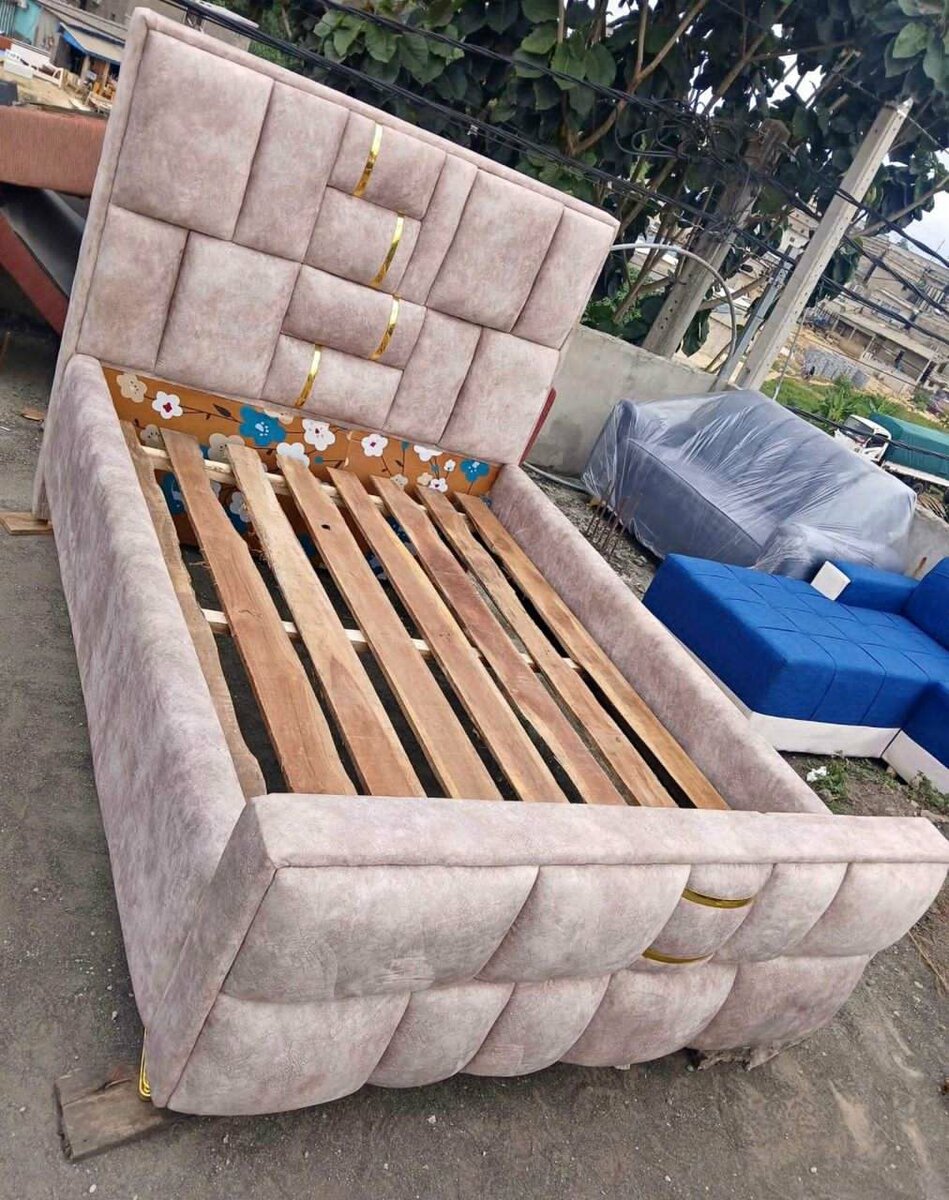 Découvrez ce lit double rembourré élégant, parfait pour offrir confort et style à votre chambre. Doté d'une tête de lit capitonnée et d'une base solide, il s'harmonise avec tout type d'intérieur. Parfait pour une chambre principale ou d'amis, il assure des nuits sereines et reposantes.