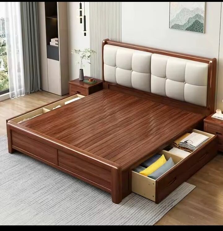 Lit double en bois avec rangements