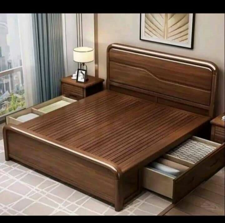 Lit double en bois avec tiroirs