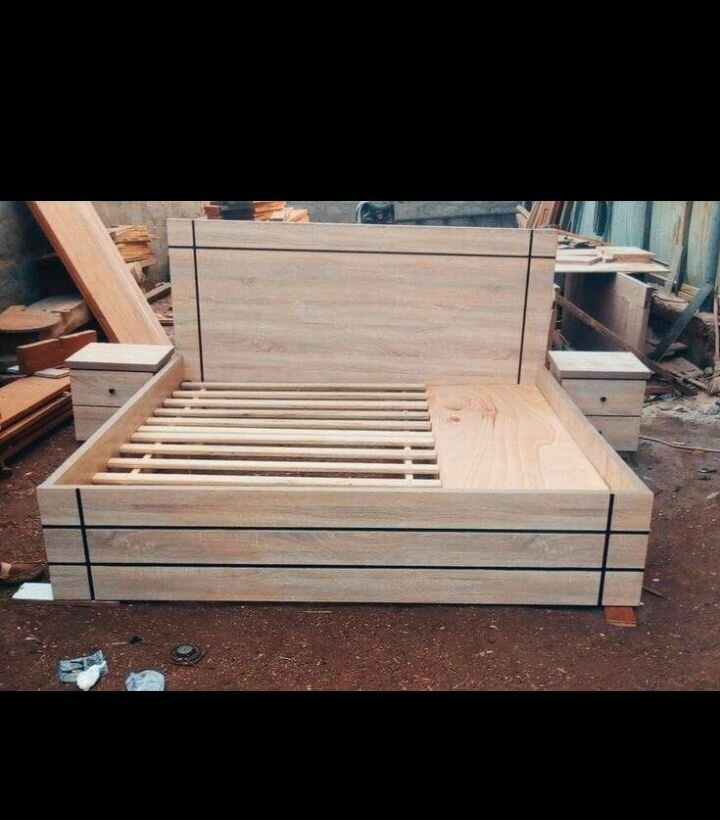 Lit en bois massif avec tête de lit et rangements intégrés. Conçu pour un confort optimal et un design élégant. Parfait pour la chambre à coucher.