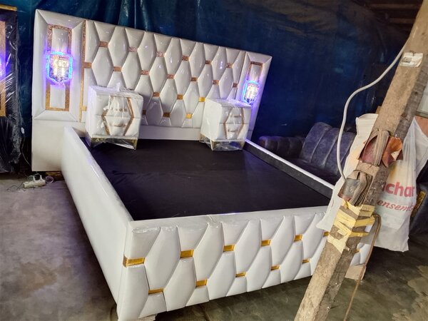 Découvrez ce lit king-size au design moderne et élégant. Parfait pour une chambre à coucher contemporaine, il offre un confort exceptionnel et une finition en simili cuir avec des accents dorés. Idéal pour transformer votre espace de sommeil en un sanctuaire de détente sophistiqué.